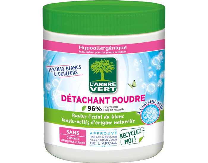 La Poudre Détachante Au Lavage L’Arbre Vert préserve les fibres et les couleurs de votre linge tout en éliminant efficacement les taches de thé, café, tomate, chocolat…