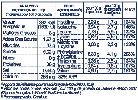 Formulés selon une association étudiée de 4 sources de protéines végétales, ils permettent de garantir une protéine complète en répondant aux attentes des régimes particuliers, protéinés, vegan, sans soja, sans lait ni gluten avec :