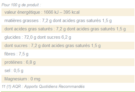 Tableau des valeurs nutritionnelles.