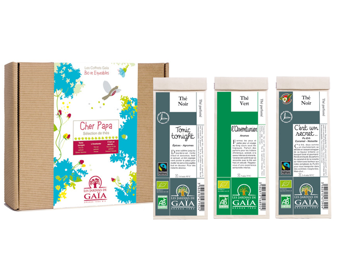 Retrouvez dans ce coffret les trois thés en sachets Jardins de Gaïa créés spécialement pour la fête des papas !