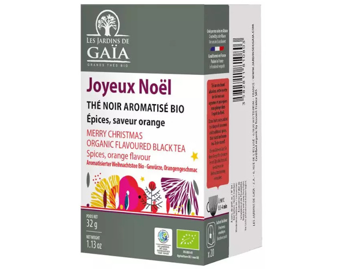 Le Thé Noir Joyeux Noël Les Jardins de Gaïa vous propose quelques notes d’agrumes additionnées d’un soupçon de cannelle et d’épices de tradition.