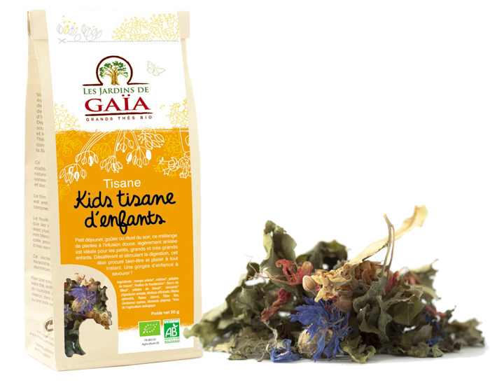 La Tisane Kids Les Jardins de Gaïa, au petit déjeuner, goûter ou rituel du soir, ce mélange de plantes à l'infusion douce, légèrement anisée est idéale pour les petits, grands et très grands enfants.