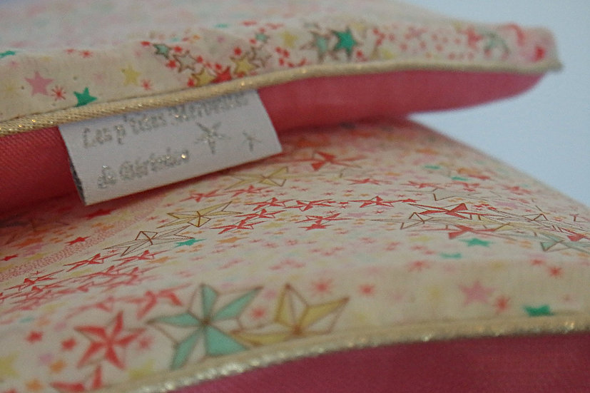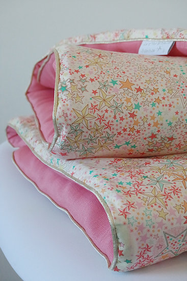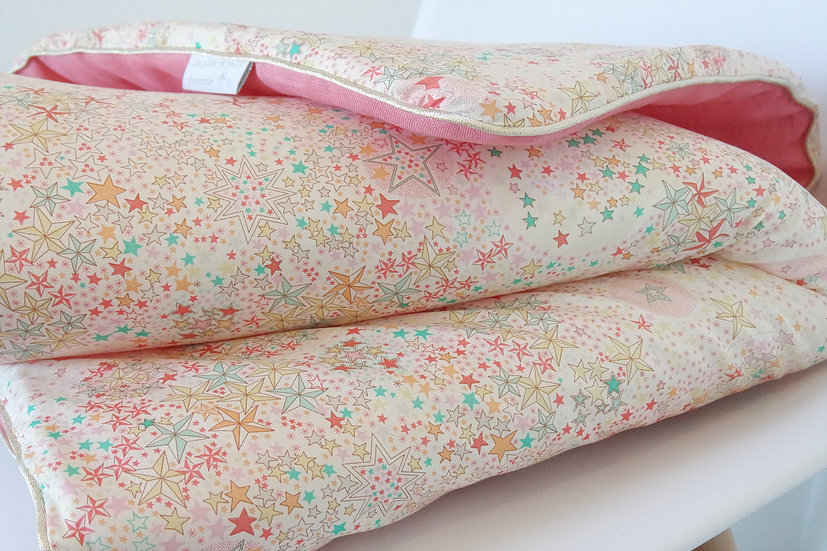 Constellation d'étoiles colorées pour cette ravissante couverture alliant un très joli tissu Liberty à un superbe lin couleur pastèque !