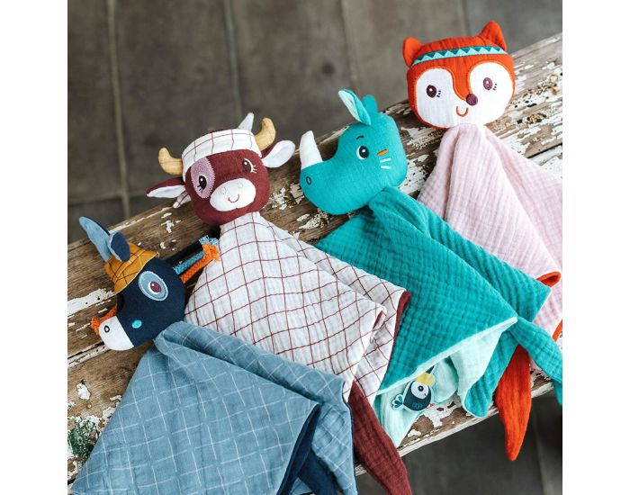 Ce nouveau doudou léger et coloré, avec un format adapté à la taille de bébé, est pourvu de petites prises faciles. Il est possible d'attacher la tétine de l'enfant grâce au nœud, afin de combiner les plaisirs sensoriels de bébé et pour faciliter la vie des parents.