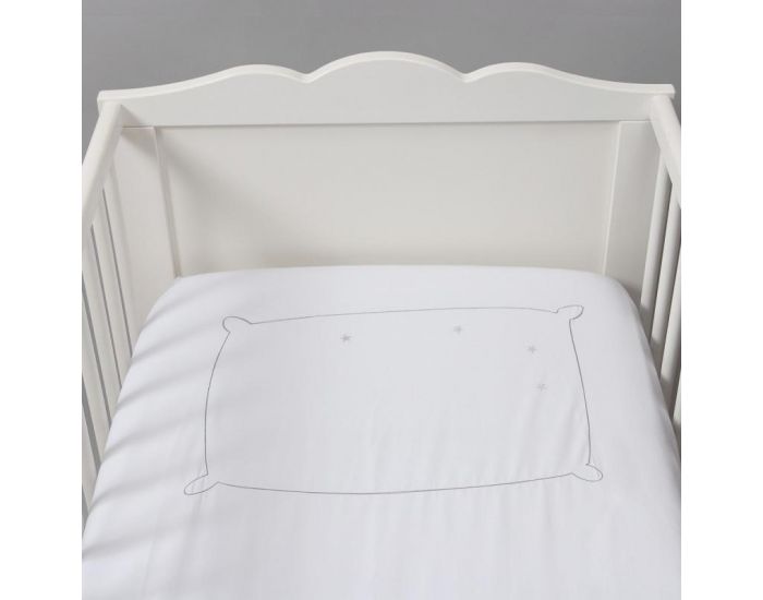 Idée cadeau naissance : vous pouvez personnaliser ce drap-housse bébé en brodant par exemple le prénom de bébé ou un petit mot sur l'étiquette prévue sur le pochon.
