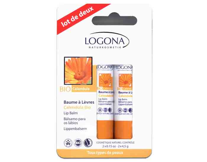Le Duo Baume à Lèvres Calendula Bio Logona prend soin de la peau délicate des lèvres grâce à sa précieuse huile de jojoba bio, à ses cires végétales nourrissantes et à son extrait de calendula bio calmant.