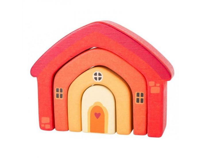 La maison puzzle est composée de 4 pièces de tailles différentes dans un joli dégradé orangé.