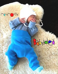 Ils sont fabriqués en tricot de laine mérinos double couche tout doux. La laine provient d'élevages garantis sans mulesing. Les Longies sont coupés assez hauts afin de grandir avec bébé et laissent assez de place pour couvrir la couche. Les coutures sont plates et le tricot est bien élastique facilitant ainsi l'habillage.