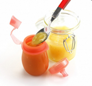 La P'tite Gourde Verte Réutilisable Mastrad Baby en silicone souple, se presse facilement pour déguster : soupes, compotes, purées, yaourts... pour les goûters à emporter.
