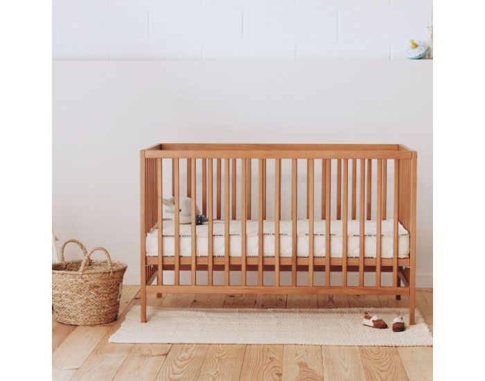 Afin que bébé bénéficie des meilleures conditions de confort, nous avons sélectionné un coutil tissé, doux et ferme, 100% coton bio.