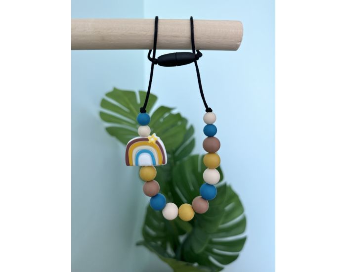 Vérifier régulièrement l'état du collier y compris les perles. Au moindre signe d'usure constaté, ne pas laisser l'enfant au contact du collier. Avant utilisation laver les perles en silicone à l'eau savonneuse et les perles en bois avec un chiffon doux. Ne pas dormir avec le collier (risque d'étranglement).