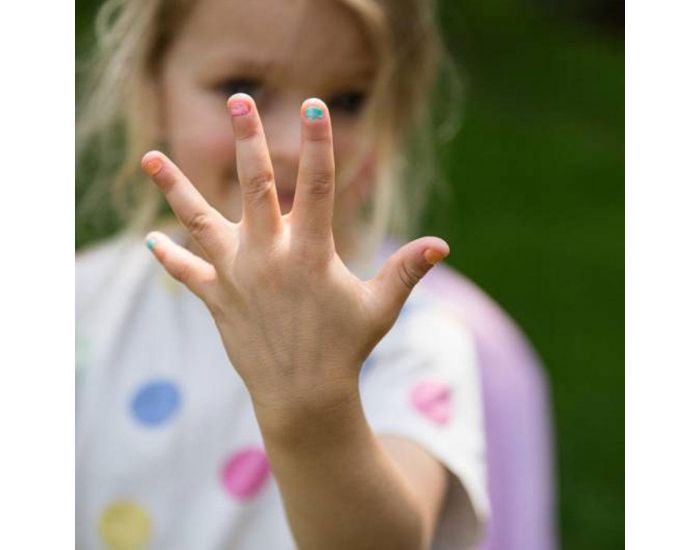 Un vernis révolutionnaire sans solvant, ni odeur !Ce vernis à ongles à base d'eau, couleur corail, a été sh2écialement conçu pour les enfants. Vous allez l'adorer et eux aussi !Formulé sans parabène, sans formaldéhyde, sans phtalate, sans toluène, sans camphre et sans nanoparticule, il peut être utilisé en toute sécurité.Simple d'utilisation, il sèche rapidement et s'enlève sans dissolvant, comme un autocollant.Contenance : 7.5 ml.Composition :Aqua (Water), Polyurethane-61, Ethylhexyl Acrylate/Styrene Copolymer, PPG-2 Methyl Ether, Silica, Tocopherol, Mica, Sodium Dehydroacetate, PEG-40 Castor Oil, Propylene Glycol, PPG-30 Butyl Ether, PEG-150/Decyl Alcohol/SMDI Copolymer, Ethylhexylglycerin, Bentonite, Ammonium Hydroxide, Ammonium Acrylates Copolymer, Aminomethyl Propanol, Tin Oxide, Silica Dimethyl Silylate, Caprylyl Glycol, Sodium Lauryl Sulfate, Phenoxyethanol, Disodium Laureth Sulfosuccinate, CI 77891 (Titanium Dioxide), CI 73360 (Red 30 Lake), CI 77492 (Iron Oxides), CI 15850 (Red 7 Lake)Conseils d'utilisation :Agitez le flacon avant ouverture.Appliquez le vernis sur des ongles propres. Laissez sécher une à deux minutes. Si nécessaire, appliquez une deuxième couche.Pour le retirer, décollez à partir d'un coin de l'ongle et tirez délicatement. Veillez à bien refermer le flacon après utilisation.Le vernis peut se conserver 12 mois après ouverture.Age minimum requis :Ce produit ne convient pas aux enfants de moins de 3 ans. Ne pas ingérer. À utiliser sous la surveillance d'un adulte.Pour usage externe uniquement.Fabricant :Namaki (fabrication française)...