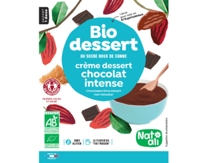 La Crème Chocolat Intense Bio Nat-Ali est une préparation en poudre au sucre de canne.