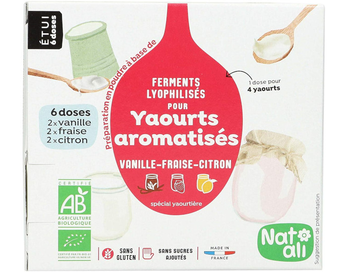 Les Ferments pour Yaourts Aromatisés Vanille Fraise et Citron Nat-Ali sont une préparation pour 24 yaourts aromatisés.
