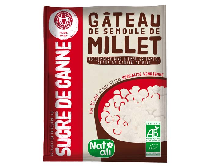 Semoule de millet*, sucre de canne*, extrait d'algues marines (carraghénanes, agar-agar), arôme naturel vanille.