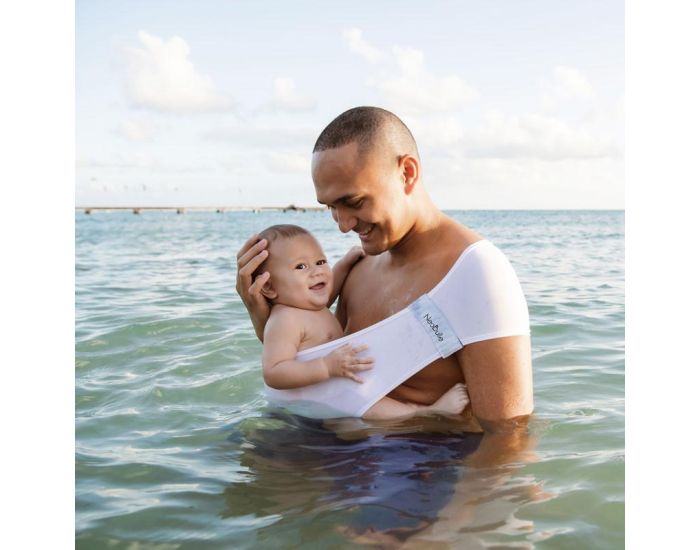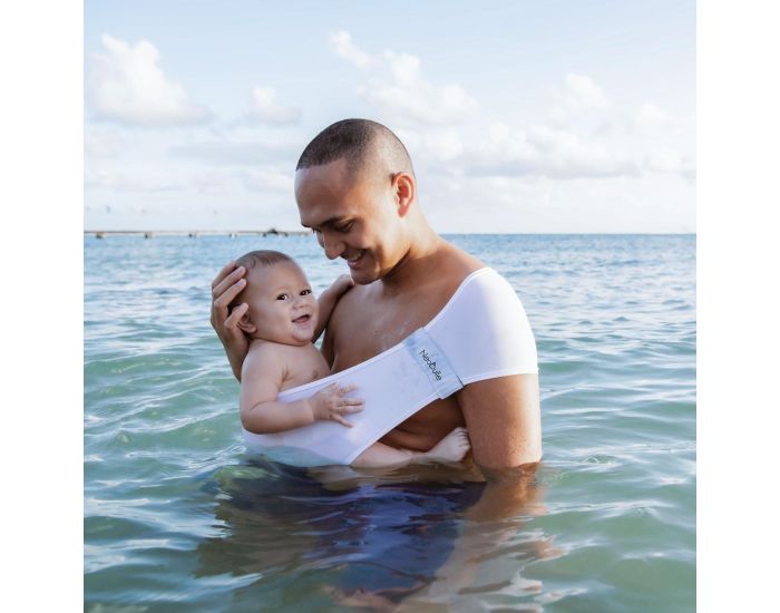 Aquabulle facilite le portage pendant les activités aquatiques. Séances de jeu à la plage, à la piscine ou douche au camping...