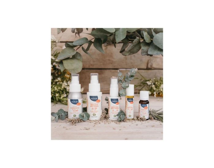 INGRÉDIENTS : Huiles essentielles BIO de Lavande fine, Eucalyptus citriodora et Géranium Rosat et d'alcool.
