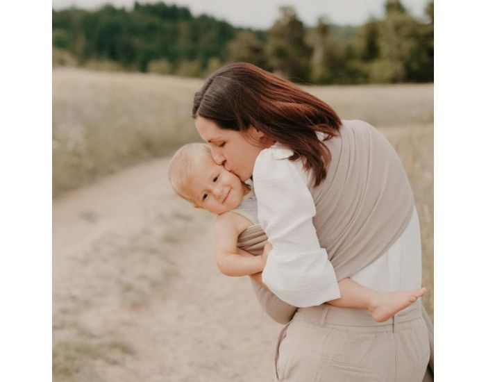 Le porte-bébé Sling permet un portage dans une position physiologique sur le ventre, le côté , tout en restant esthétique.