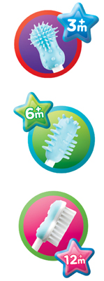 Les Brosses à Dents Set Évolutif Lot de 3 Nuby vont pouvoir accompagner bébé tout au long de son évolution et de l'arrivée de ses petites dents.