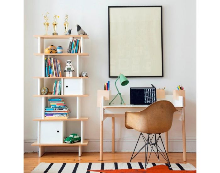 Cette alternance d'espaces ouverts et fermés lui confère un look design et moderne qui plaira à toute la famille. Elle s'accordera à merveille avec les lits et commodes de la gamme de mobilier éco-conçue Oeuf NYC.