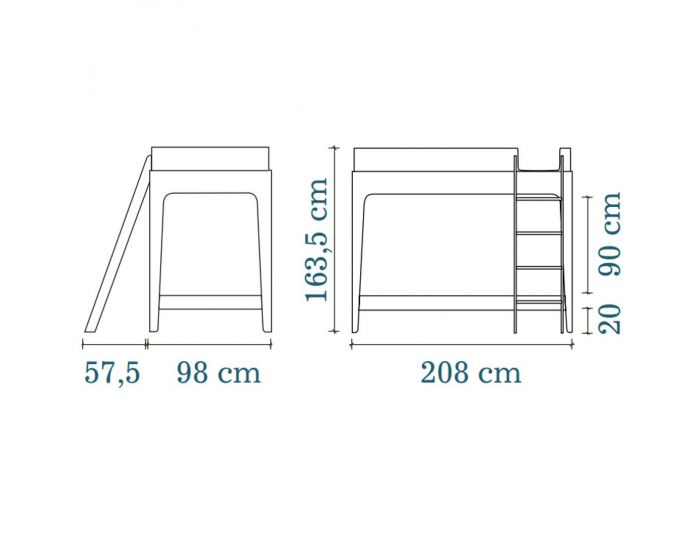 - Dimensions des matelas (vendu séparément): 90 x 200 cm - Epaisseur maximum pour le matelas du haut: 18 cm