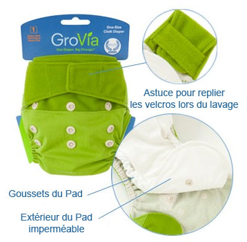 Grâce à sa conception très innovante, seules 2 à 4 couches Grovia complètes sont nécessaires pour le change d'une journée. En effet, grâce à son filet interne, la culotte extérieure peut être utilisée plusieurs fois d'affilé, sans nécessiter de lavage. Il suffit seulement de remplacer à chaque change le "Pad" (Noyau absorbant), que vous pouvez acheter séparément.