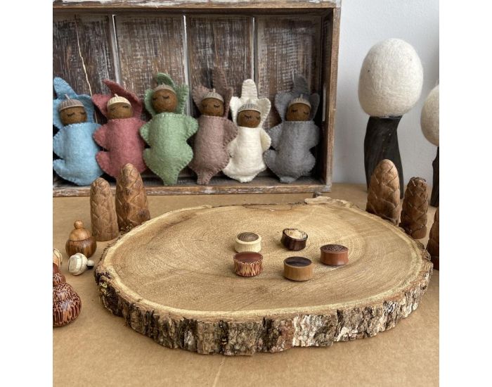 Découvrez ce magnifique lot de 5 pièces en bois rondes Papoose.