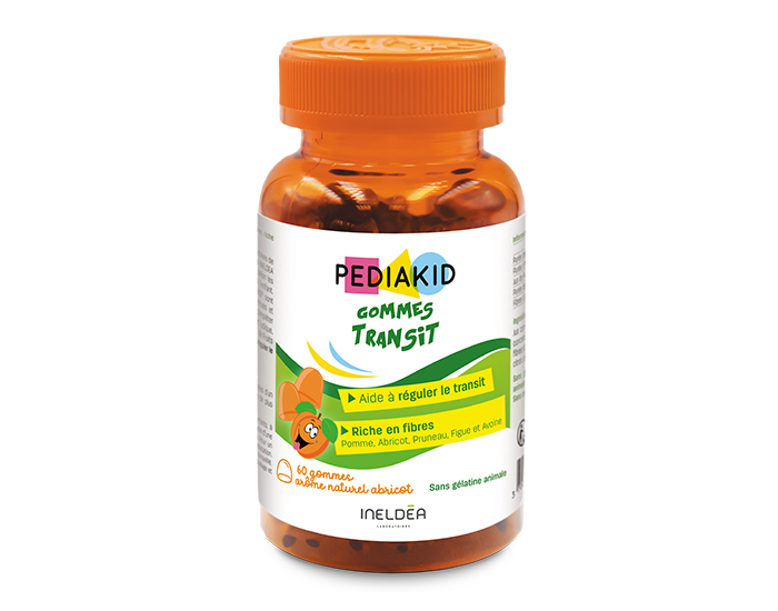 Les Gommes Transit Pediakid sont des compléments alimentaire à base de Fruits (94%) et d’Avoine, riche en fibres.