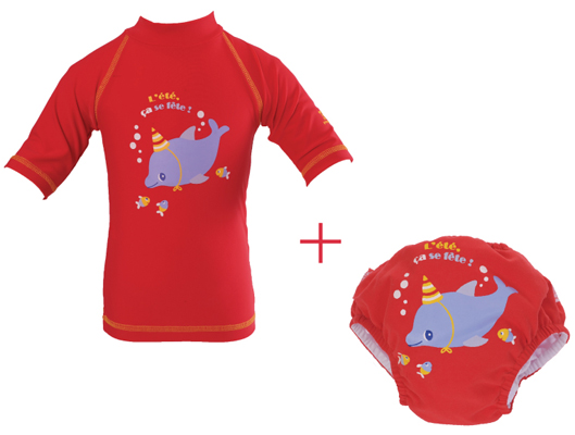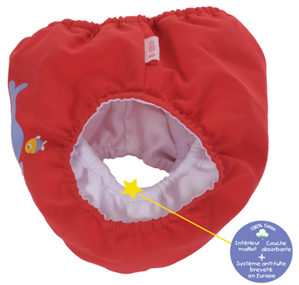 Le Maillot Couche Dauphin Rouge Piwapee est très pratique avec sa couche en velours de coton intégrée très doux pour les fesses de bébé et vraiment efficace.