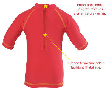 Le Top Anti-UV UPF 50+ Dauphin Rouge Piwapee garantit une très haute protection solaire (UPF50+) en bloquant 98% des UVA et UVB. Son col monte bien haut pour éviter les coups de soleil au niveau des épaules et du cou et ses manches descendent jusqu’aux coudes environ…