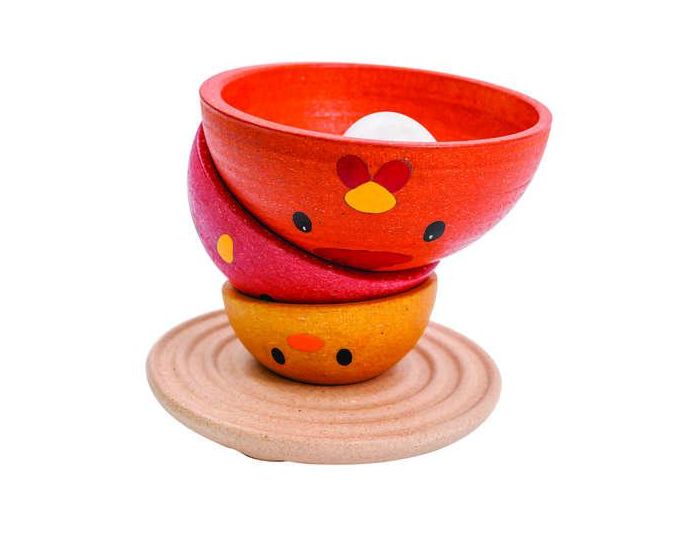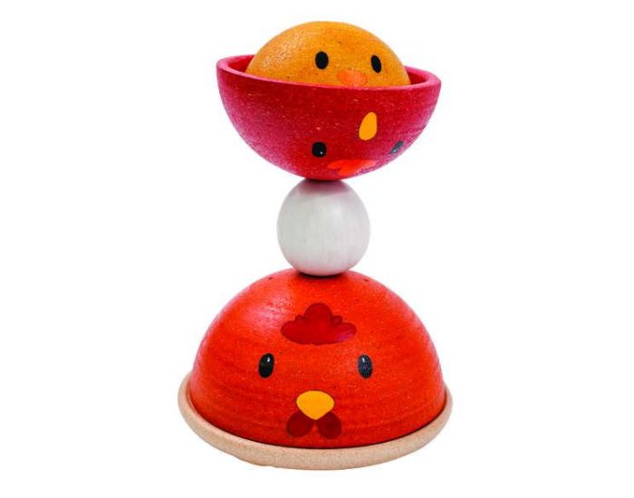 La poule à empiler, jouet d'éveil en bois de la marque responsable Plan Toys.