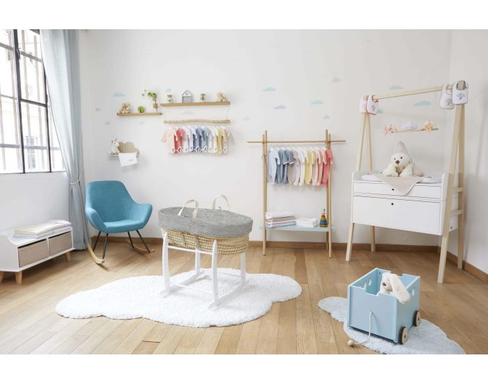 Le support de couffin conçu par Clair de Lune crée un doux mouvement de va-et-vient qui permet d'apaiser bébé et l'aide à s'endormir. Conçu en pin, des barres de fixation réglables permettent d'ajuster au plus près le support à la taille de votre couffin.