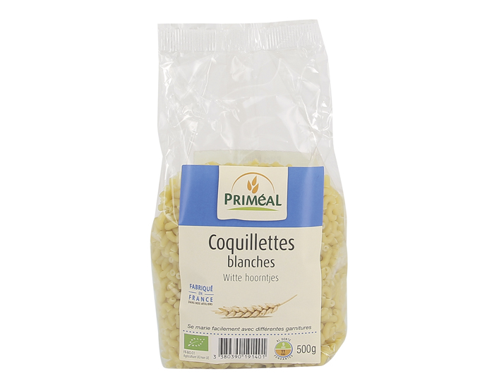 Dans leur atelier de fabrication en Ardèche, Priméal respecte la recette traditionnelle des pâtes pour fabriquer ses Coquillettes Blanches : de la semoule de blé dur et de l'eau, c'est tout !