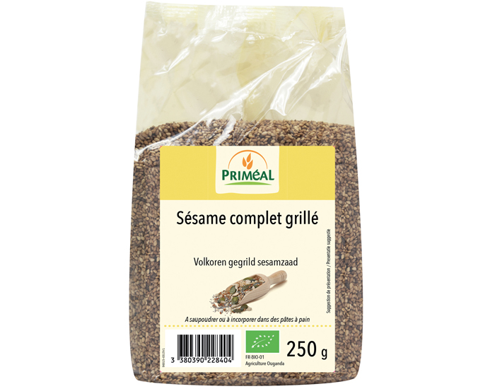 Le Sésame Complet Grillé PRIMÉAL est délicieux saupoudré sur tous les plats ou incorporé dans les pâtes à pain et à biscuits.C'est l'ingrédient de base pour réaliser le gomasio.