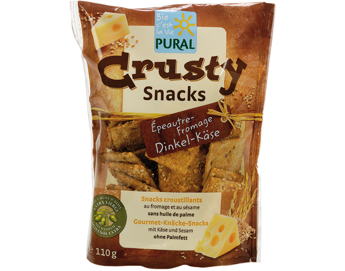 Les Crusty Snacks Epeautre Fromage Pural sont de délicieux gâteaux snacks au fromage et au sésame.