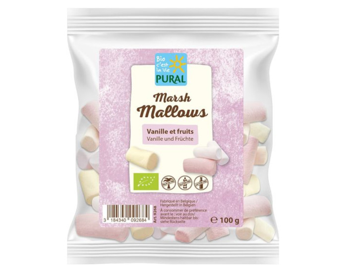 Les Marshmallows Vanille et Fruits Pural de délicieux bonbons moelleux au bon goût de vanille et de fruits, raviront les petits et les grands gourmands.