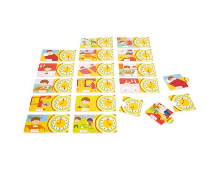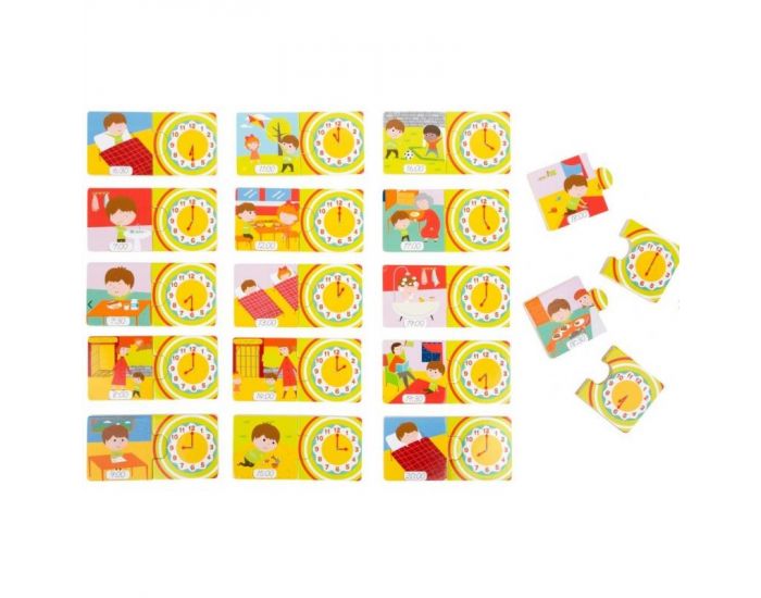 Au moyen de jolies images de scènes du quotidien, les enfants apprennent l'heure avec ce puzzle éducatif en bois tout en s'amusant.