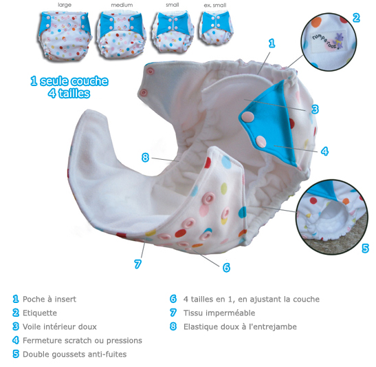 retiennent très bien les selles (même les selles liquides des bébés allaités) et suppriment efficacement les fuites.