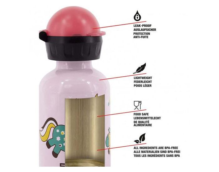 La gourde idéale à utiliser partout, un joli monde féérique avec des adorables licornes prêts à transporter votre boisson préférée ! À la maison comme en balade, chez la nounou, à la crèche, pour le sport et même à l'école où les nouvelles conditions sanitaires imposent aux enfants d'avoir leur propre gourde marquée à leur nom.