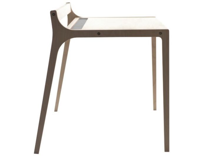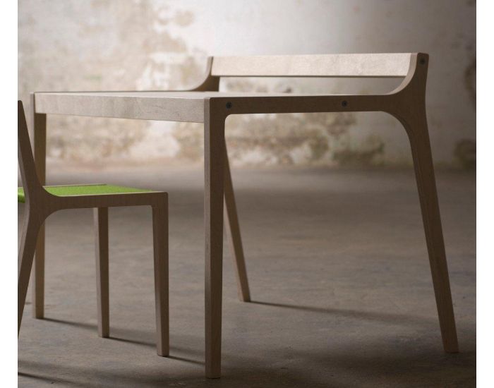 La table est réalisée en contreplaqué de bouleau brut finement poncé pour un toucher doux et délicat. Hauteur du plateau : 52 cm.