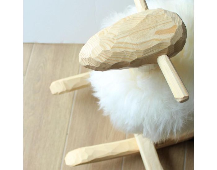 - Matériaux : bois massif (pin et peuplier) et peau d'agneau naturelle