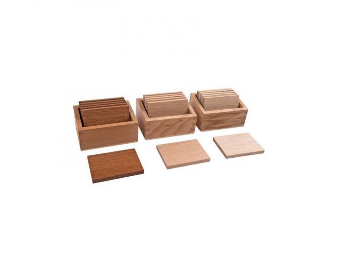 Les planchettes sont différentes entre elles par leur poids et leur couleur. (plus le bois est foncé, plus il est dense).