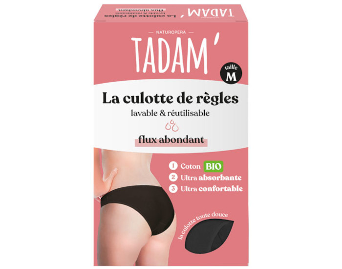 Les Culottes menstruelle Flux Abondant de Tadam en coton bio sont lavable et réutilisable, elle assure une protection efficace et sans fuite.