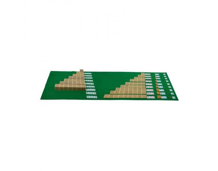 Le tapis possède des espaces (désignés par des coutures colorées) permettant de disposer le matériel des perles dorées et d'autres espaces adjacents pour les cartes numériques.