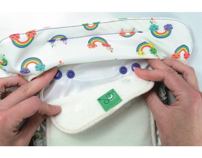 La couche TE2 Peenut comprend 1 partie imperméable sur laquelle on peut pressionner des inserts absorbants (non inclus).