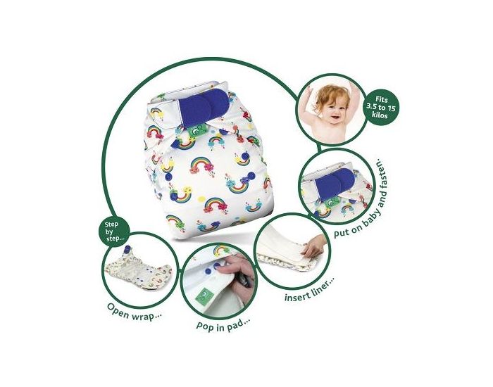 La couche TE2 Peenut comprend 1 partie imperméable sur laquelle on peut pressionner des inserts absorbants (non inclus).