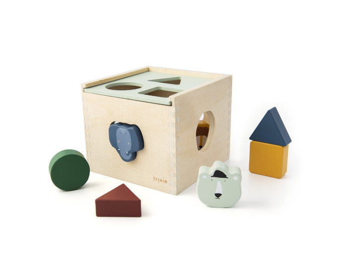 Cette Boite à Formes en Bois Trixie, grand classique de tous les temps, est un mélange rigolo de formes géométriques et de visages de gentils animaux.