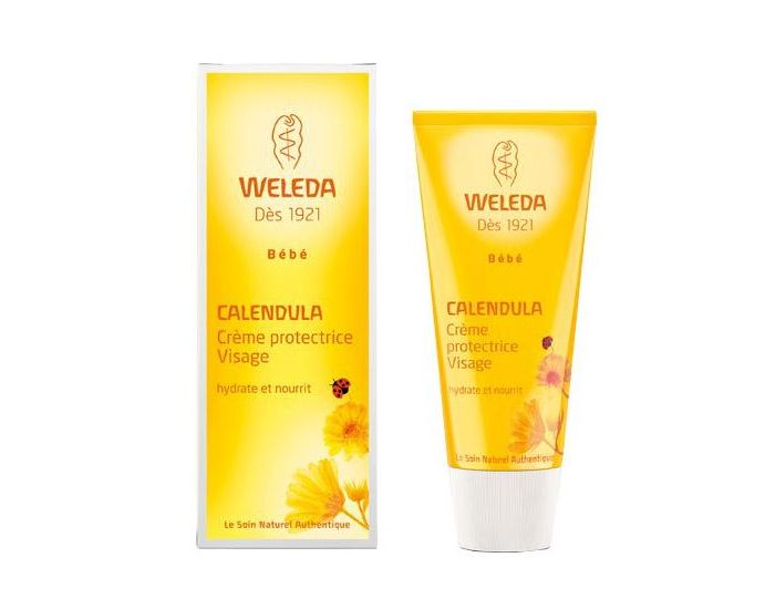 Une crème qui hydrate et nourrit le visage de bébé !Soin quotidien hydratant, la Crème h2rotectrice Visage au Calendula prévient le dessèchement de la peau et soutient ses fonctions naturelles.Elle protège efficacement la peau de bébé contre les agressions climatiques (vent, froid) et soutient les fonctions naturelles de la peau.L'huile d'amande douce nourrissante et adoucissante préserve du dessèchement cutané.L'extrait de Calendula de qualité bio-dynamique calme et apaise.La cire d'abeille forme un léger film protecteur non occlusif.De texture onctueuse, elle pénètre facilement sans laisser de film gras. La peau de bébé, à nouveau hydratée, retrouve sa douceur. Conseils d'utilisation :La Crème protectrice Visage Weleda s'utilise en soin quotidien après la toilette ou à tout moment de la journée.Elle constitue une excellente protection en cas de conditions climatiques défavorables.Appliquer une noisette de crème sur le visage ; faire pénétrer en massant légèrement. Contenance :tube 50ml Composition :EauHuile d'amande douceAlcoolLanolineEsters d'acide grasCire d'abeilleExtrait de fleurs de calendulaXanthaneHuiles essentielles dont huile essentielle de lavande vraie Fabricant :Weleda, fabriqué en France....