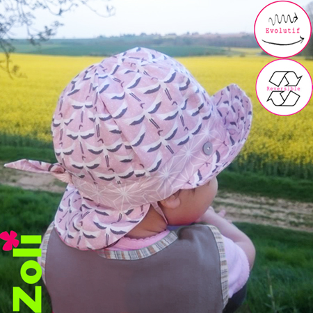 ZOLI Chapeau Evolutif Reversible - Cigognes - 3 mois à 6 ans